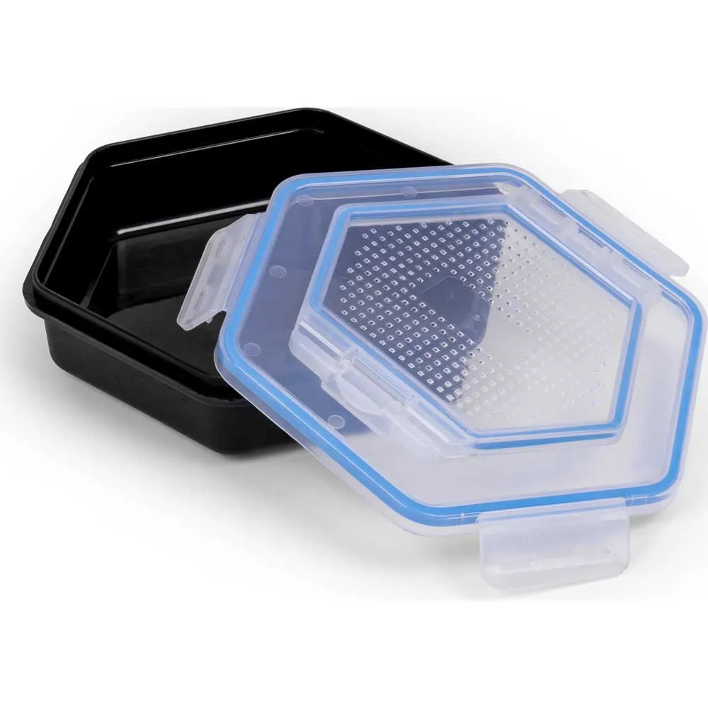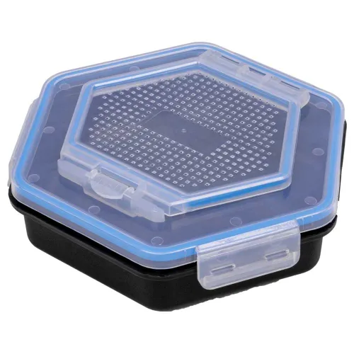 Videre er denne agnboksen konstruert for å opprettholde kvaliteten på agnet ditt. Lokket er intelligent perforert med et mønster av små hull, som gir viktig ventilasjon for levende agn som maggots og mark. Denne konstante luftsirkulasjonen holder dem sunnere, livligere og mer aktive lenger, noe som øker deres effektivitet i å tiltrekke fisk. 1-liters kapasiteten gir den perfekte balansen, og tilbyr god plass til en dags agn uten å være for klumpete, noe som gjør det til et allsidig valg for grovfiske, konkurransefiske og fritidsfiske.