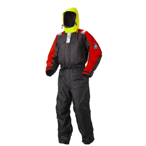 Miękki i wygodny kombinezon do pływania. W pełni wodoodporny z klejonymi szwami. Cztery kieszenie zewnętrzne i dwie kieszenie zewnętrzne wyłożone polarem. Szelki wewnętrzne. Zatwierdzony zgodnie z tymi samymi standardami, co pomoc wypornościowa. Pozostaje miękki i wygodny w noszeniu w bardzo niskich temperaturach. Wyporność: 80N.
