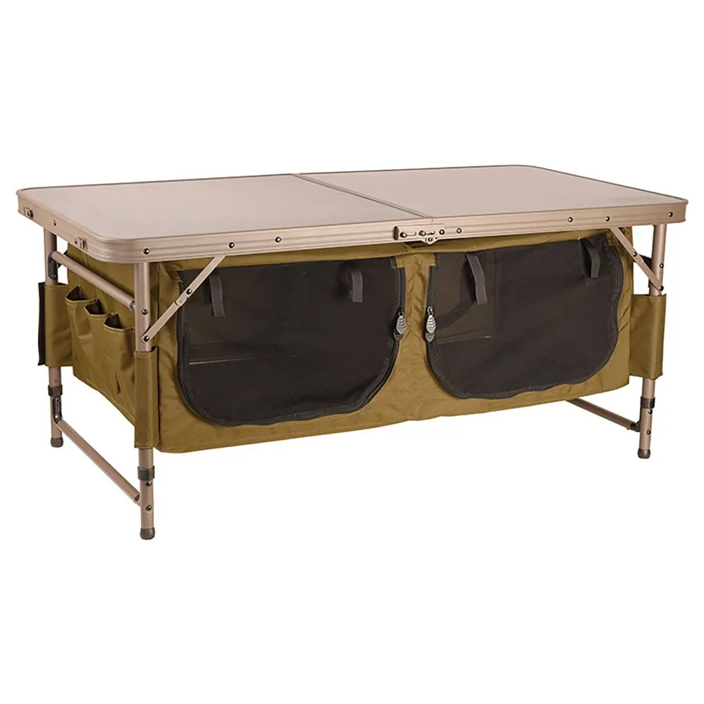 Rozwiązanie 2 w 1 łączące duży stół z miejscem do przechowywania pod spodem na dłuższe sesje
