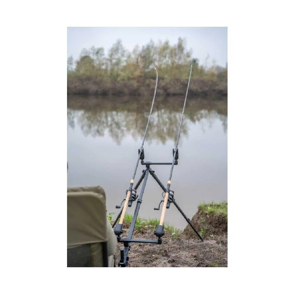 Ramię do podajnika trójnożnego Progress, 2 wędki. Teraz z przednimi i tylnymi poprzeczkami, ten super stabilny zestaw wykonany jest z profili anty-skrętnych, które zapewniają całkowicie stabilną platformę dla Twoich wędek i kołowrotków. Ramę można wydłużyć podczas użytkowania, ale składa się starannie dzięki podwójnie wysuwanym zamkom krzywkowym, dzięki czemu jest znacznie bardziej kompaktowa podczas transportu. Solidne, przesunięte poprzeczki są niezwykle mocne i wyposażone w nasz genialny system szybkiego zwalniania bez gwintów, więc nie musisz ich wkręcać i wykręcać, aby ich używać lub zdejmować, po prostu przełącz przełącznik krzywkowy i jesteś gotowy do pracy. Tylną poprzeczkę można regulować w różnych pozycjach na ramie. Obie poprzeczki są wyposażone w gwinty do mocowania podpórek pod wędki lub sygnalizatorów brań. Przednie nogi można regulować pod niemal dowolnym kątem, a także regulować wysokość za pomocą przełączników krzywkowych.