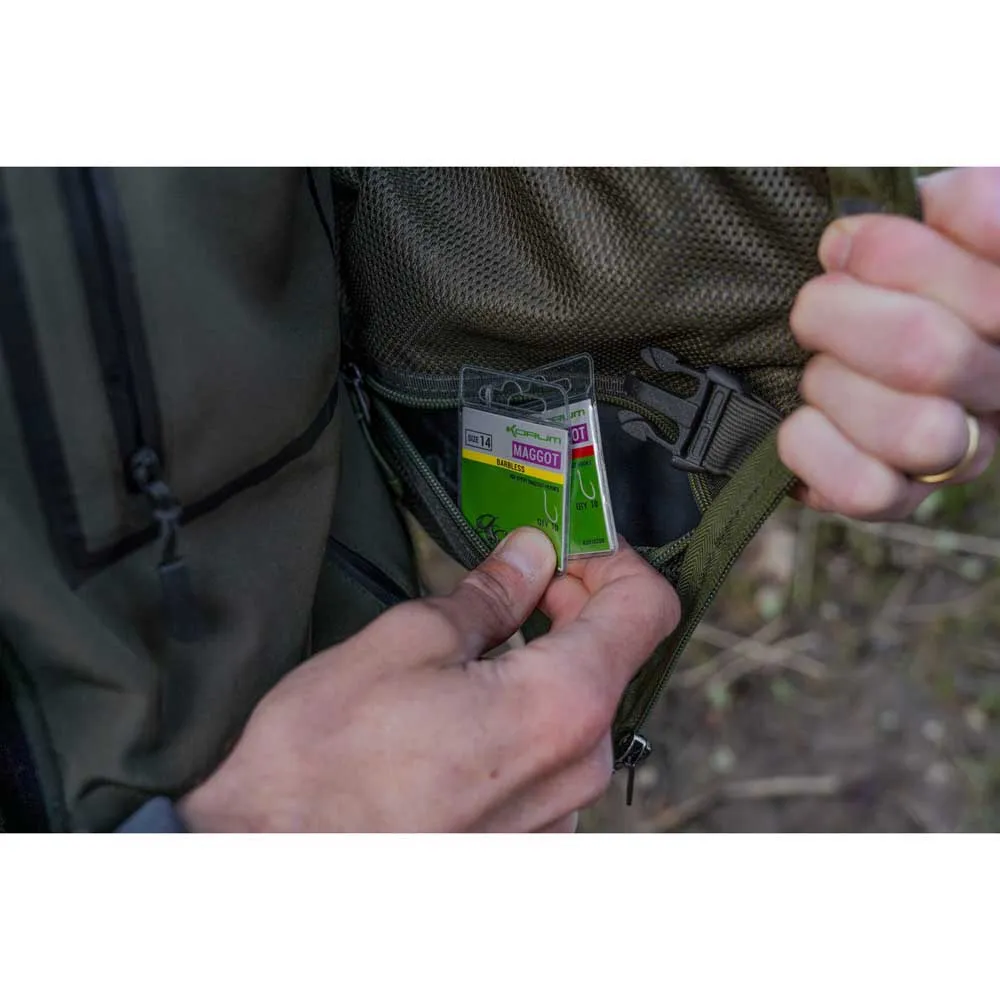 Lekka kamizelka wędkarska zaprojektowana dla mobilnego wędkarza. Ten zaktualizowany model jest lżejszy i bardziej przewiewny. Posiada wygodnie rozmieszczone kieszenie, które mieszczą przedmioty z naszej serii Tackle Blox. Wygodna kamizelka posiada również dodatkowe kieszenie na przypony, narzędzia i rzeczy osobiste. Tylna kieszeń to wygodne miejsce do przechowywania większej ilości sprzętu i przynęt, a w razie potrzeby można ją zdjąć i nosić oddzielnie od kamizelki. Wykonana z tych samych świetnych materiałów, co nasza seria bagaży Progress. Jeden uniwersalny rozmiar. Odporna na wodę tkanina zewnętrzna Oxford i żakardowa 600D z podszewką 210D. Zamki błyskawiczne SBS z łatwymi do chwytania uchwytami. Wytrzymały poliester. Wzmocnione uchwyty D do zawieszania akcesoriów do pielęgnacji ryb i siatek.