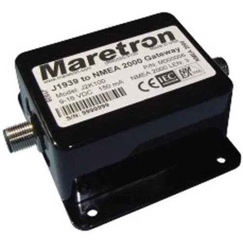 Maretrons J2K100 przywiązuje bezpośrednio do sieci J1939 kompatybilnych silników, przekładni i agregatów prądotwórczych i przetwarza dane silnika J1939 do morskiego cyfrowym interfejsem NMEA 2000. Krytyczne silnik, skrzynia biegów, a dane agregat jest następnie rozprowadzane na całym statku jednym kablem, gdzie może być monitorowany przez każdego kompatybilnego NMEA 2000 wyświetlaczu. Wszystkie potrzebne informacje są dostępne zawsze i wszędzie jest to potrzebne.