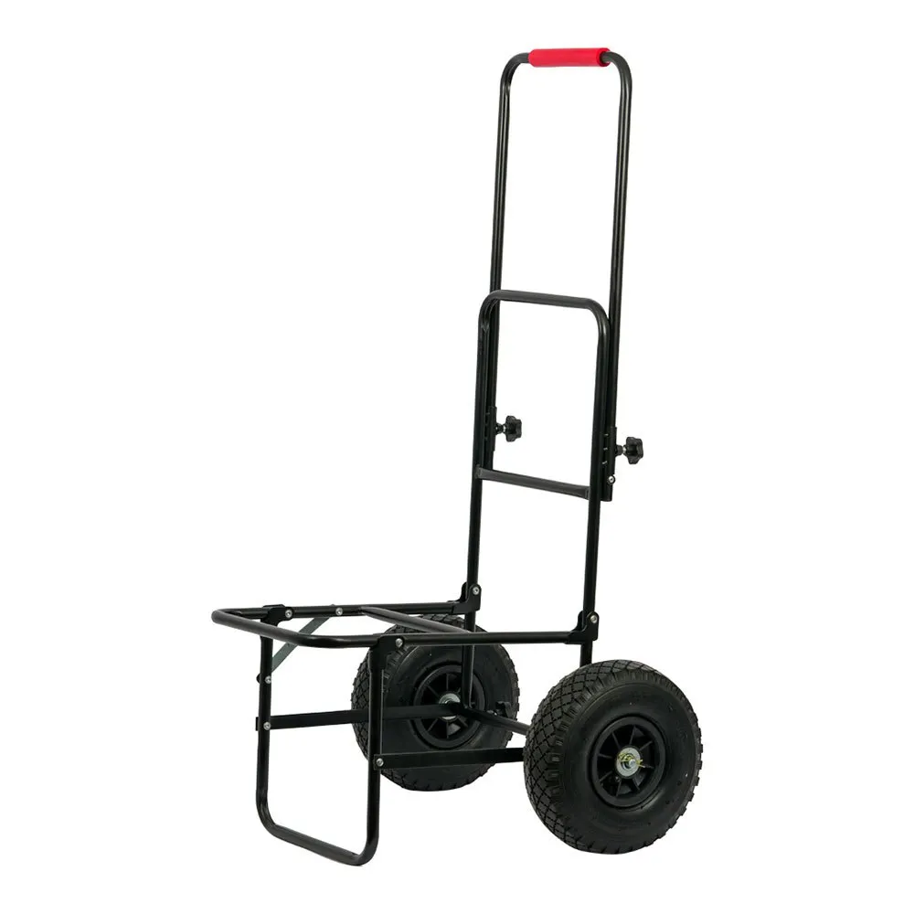 Wózek Outdoor to wyjątkowo mocny, łatwy w obsłudze przyrząd, który można łatwo złożyć i jednocześnie transportować. Posiada mocną ramę teleskopową. Część transportowa ma wymiary 30x100 cm - maksymalnie, nadaje się do transportu ok. 30 kg. Dzięki wypełnionym powietrzem kołom o średnicy 25 cm możemy łatwo przetransportować nasze wyposażenie do wybranego miejsca wędkowania.