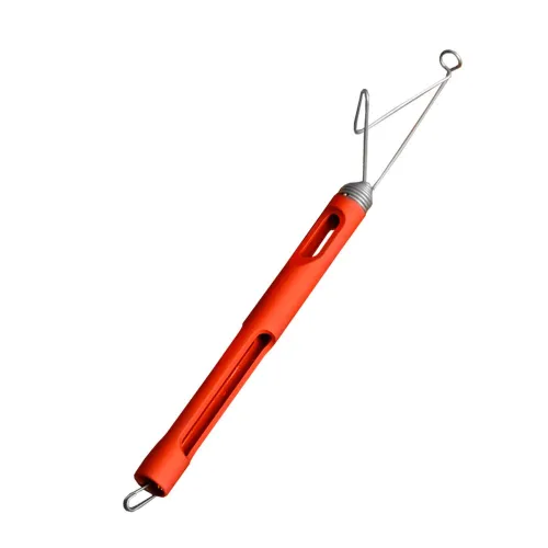 Dzięki nowemu MP-releaserowi Marc´a Petitjean´a można odpiąć i uwolnić rybę bez dotykania jej ani wyciągania z wody. Konstytutywna sprężyna z przodu narzędzia miękko absorbuje wszelkie ruchy ryby. Możesz, niezależnie od tego, czy jesteś praworęczny, czy leworęczny, włożyć tippet do narzędzia, sięgnąć po muchę i bez ruchu releasera, uwolnić rybę.