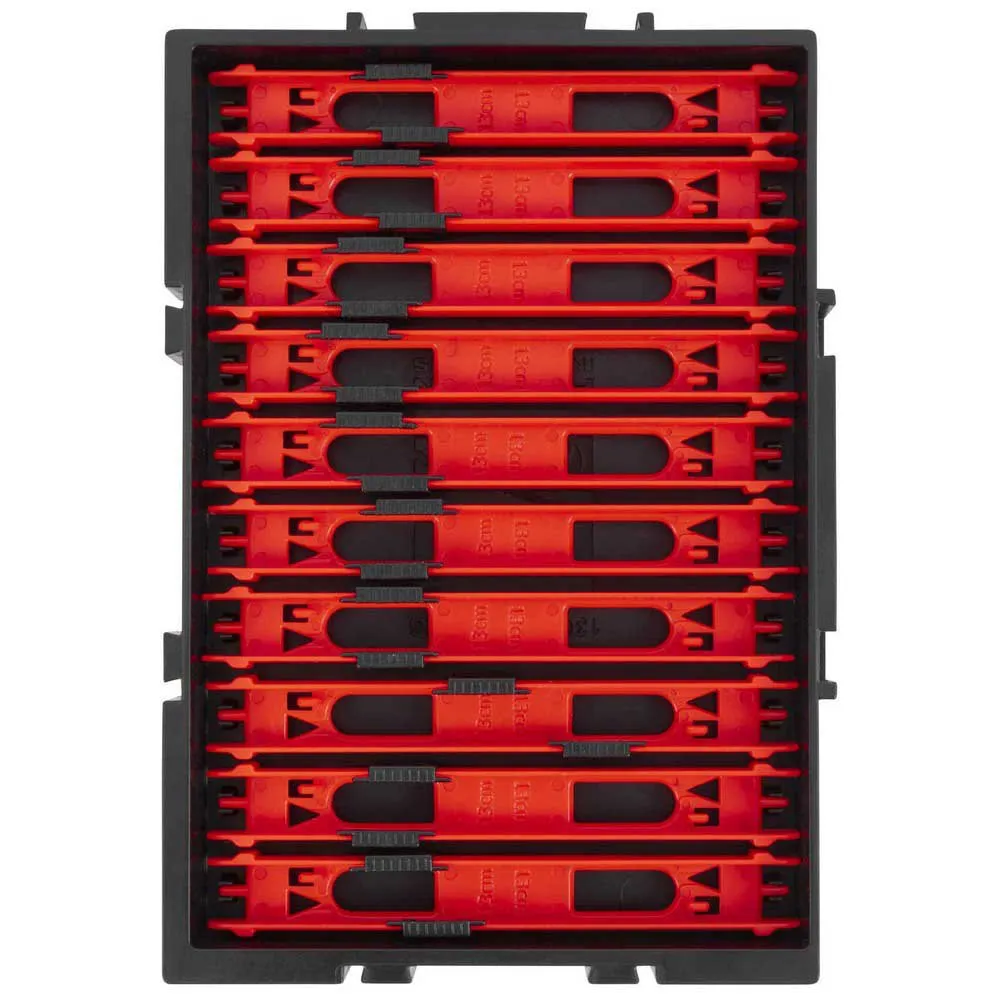 Tacki na nawijaki Interlok są w pełni konfigurowalne, aby umożliwić Ci stworzenie idealnej tacki na nawijarki do siedziska Absolute lub Incepcji. Tace o różnych rozmiarach blokują się razem, a następnie idealnie pasują do zestawu tac Absolute lub Inception Shallow o średnicy 26 mm. Popularną konfiguracją jest jedna z każdej tacy, co daje możliwość przechowywania przyponów o różnych kształtach i rozmiarach w tej samej tacy. W przypadku wędkarzy korzystających z wielu tacek lub używających podobnego stylu spławika na wszystkich przyponach, te same tacki można połączyć, aby uzyskać dużą pojemność jednego rozmiaru nawijaka. Taca 26 cm zajmuje 50% pojemności siedziska, podczas gdy taca 13 cm i 18 cm zajmują po 25% każdy, wszelkie kombinacje dodając do 100% wypełnią płytką tacę Absolute lub Inception.