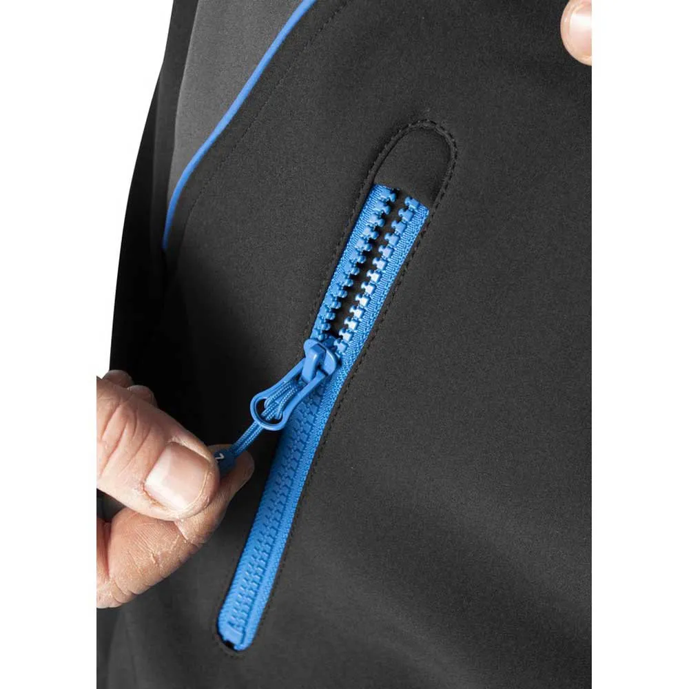 Posiada elastyczne mankiety, które pomagają wyeliminować wodę spływającą po ramieniu i trzy kieszenie na suwak, idealne do przechowywania telefonu, kluczy i innych kosztowności.