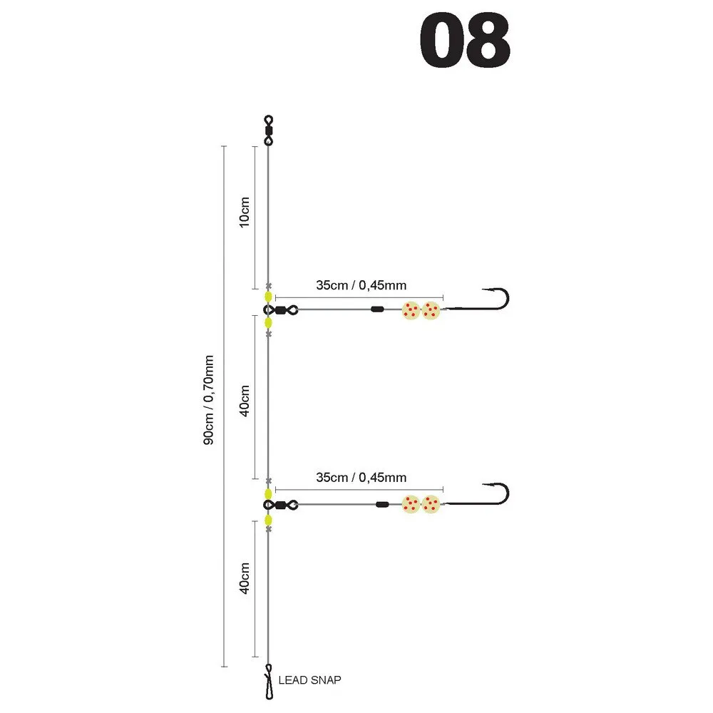 Zwiększona Skuteczność: Każdy zestaw jest fachowo zaprojektowany do łowienia określonych gatunków i w konkretnych scenariuszach. Konfiguracje są zoptymalizowane pod kątem idealnej prezentacji przynęty, zwiększając Twoje szanse na przyciągnięcie brań od gatunków takich jak dorsz, flądra, okoń morski i inne. Przemyślana konstrukcja pomaga zapobiegać splątaniom i zapewnia, że Twoja przynęta wygląda naturalnie i kusząco w wodzie.