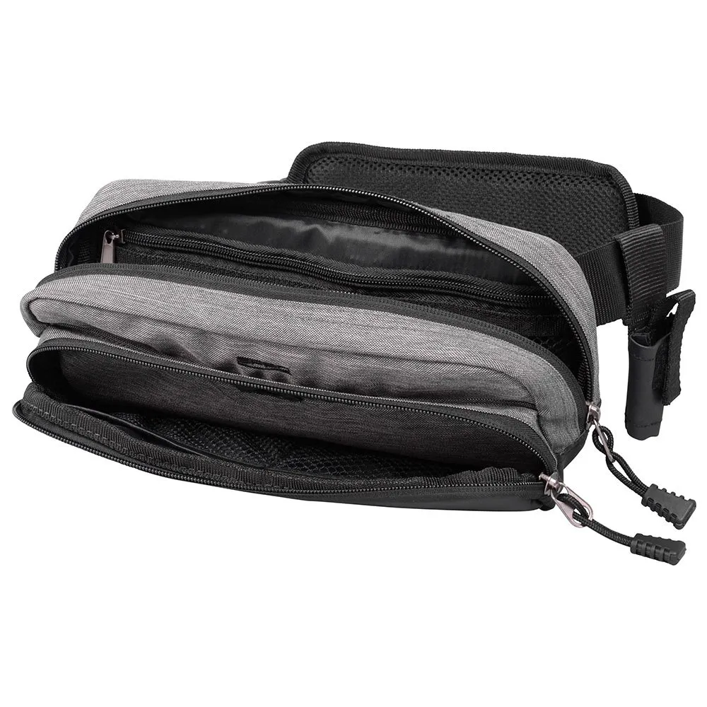 Pas ten można przedłużyć do 140 cm talii i posiada główną kieszeń z dwiema przegrodami.