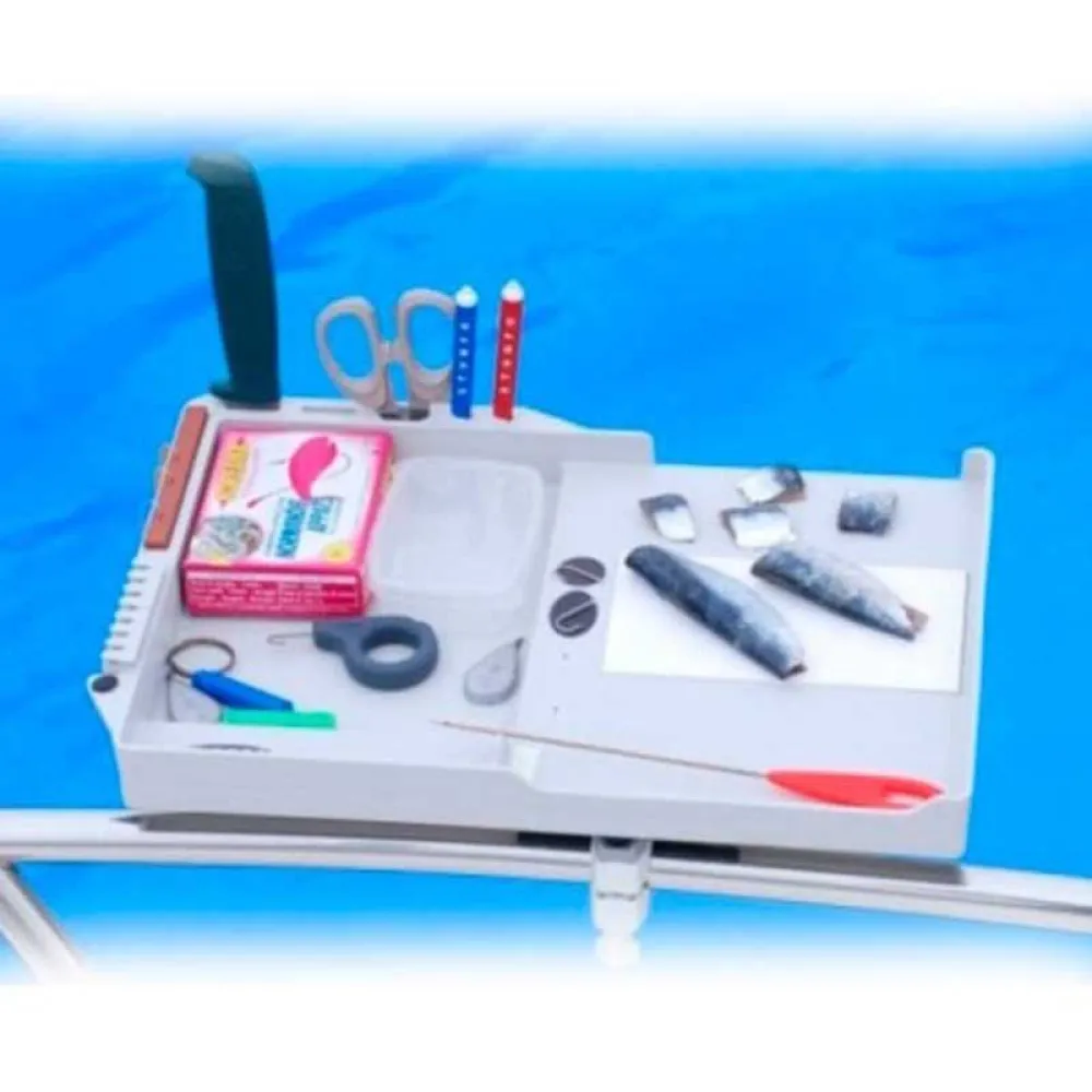 Przynęta zaprojektowana z myślą o zaspokojeniu wielu potrzeb wędkarzy. Jego struktura z wytrzymałego tworzywa jest idealnie zaokrąglona i nie posiada ostrych krawędzi. Komora może pomieścić różne pudełka na przynęty lub narzędzia w stabilnej pozycji. Inne ważne cechy sprawiają, że tacka na przynęty jest dobrze wyposażonym stanowiskiem roboczym niezbędnym na każdym rodzaju łodzi. Wymiar 39x28 cm. Dostarczany z regulowaną podstawą ze stali nierdzewnej, zaciskiem i łącznikiem kątowym. 1 sztuka na worek.