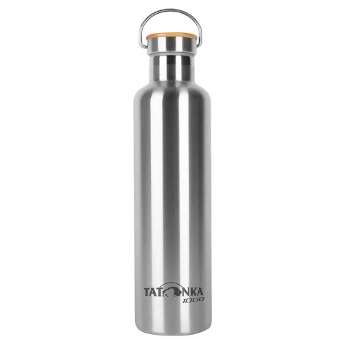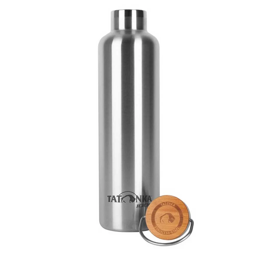 Nietłukąca izolowana butelka ze stali nierdzewnej z bambusową pokrywką i pojemnością 1 litra: Tatonka Hot+Cold Stuff Bamboo Lid 1000