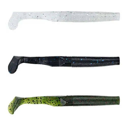 Przynęta Swimming Senko Soft Lure jest dostępna w różnych przyciągających wzrok kolorach i wzorach. Opcja Blue Pearl/Large Silver Flake ma żywy odcień niebieskiego z dużymi srebrnymi płatkami, które naśladują wygląd popularnych ryb przynętowych. Przynęta Green Pumpkin/Large Black Flake oferuje bardziej naturalny wygląd dzięki kolorowi zielonej dyni i dużym czarnym płatkom, dzięki czemu idealnie nadaje się do naśladowania raków lub innych ofiar.