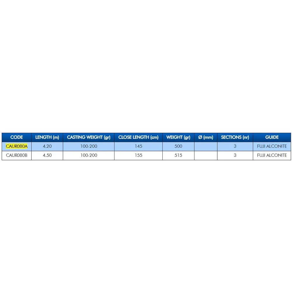 Projetada para o pescador de surfcasting dedicado que exige o máximo desempenho, a COLMIC Urtan X8 é um pináculo da tecnologia em canas de pesca. Desenvolvida para conquistar as condições costeiras mais desafiadoras, esta cana oferece a sinergia perfeita de imensa potência de lançamento e sensibilidade requintada, permitindo-lhe dominar as ondas e detetar as mordidas mais subtis com absoluta confiança. Quer seja um pescador competitivo ou um entusiasta apaixonado que procura elevar o seu nível, a Urtan X8 é a sua ferramenta definitiva para o sucesso.