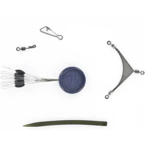 Neste conjunto, você encontrará tudo o que um pescador de feeder pode precisar, desde o engate rápido para prender o equipamento ao protetor de nós, até as contas de borracha que evitam emaranhados e atuam como um trava deslizante no equipamento de cabelo.
