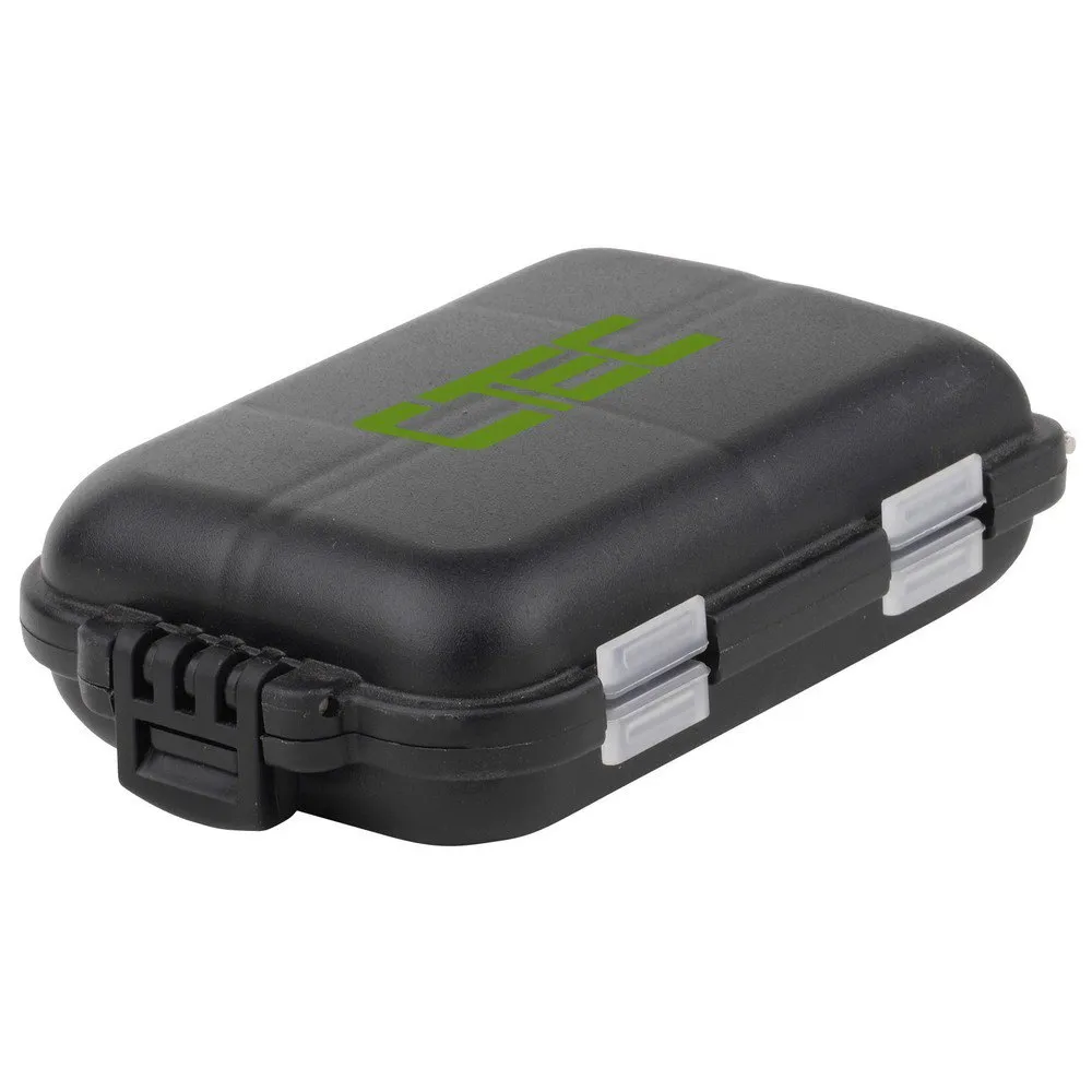 Uma pequena caixa de equipamento de bolso que inclui 4 unidades de cada equipamento de terminal essencial de nossos produtos CTEC em verde e marrom