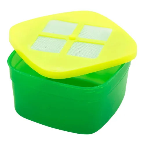 A caixa de isca vem em uma atraente combinação de cores verde e amarelo, tornando-a fácil de localizar e localizar em sua caixa de equipamento ou equipamento de pesca. As cores vibrantes também adicionam um toque de estilo ao seu equipamento de pesca, dando a você uma aparência profissional na água.