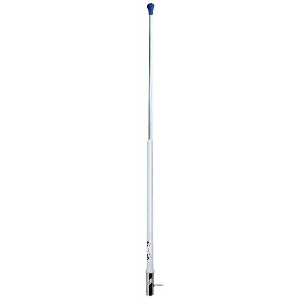 Antena VHF em fibra de vidro, cm 240. Freq. 156-162 Mhz, ganho 6 db, impedância 50 ohms, SWR = 1,3 a 156,8 MHz, potência máxima de entrada 100 W. Cabo coaxial (não corte) de 4,5 m, com conector PL259. Para iate e barco a motor.