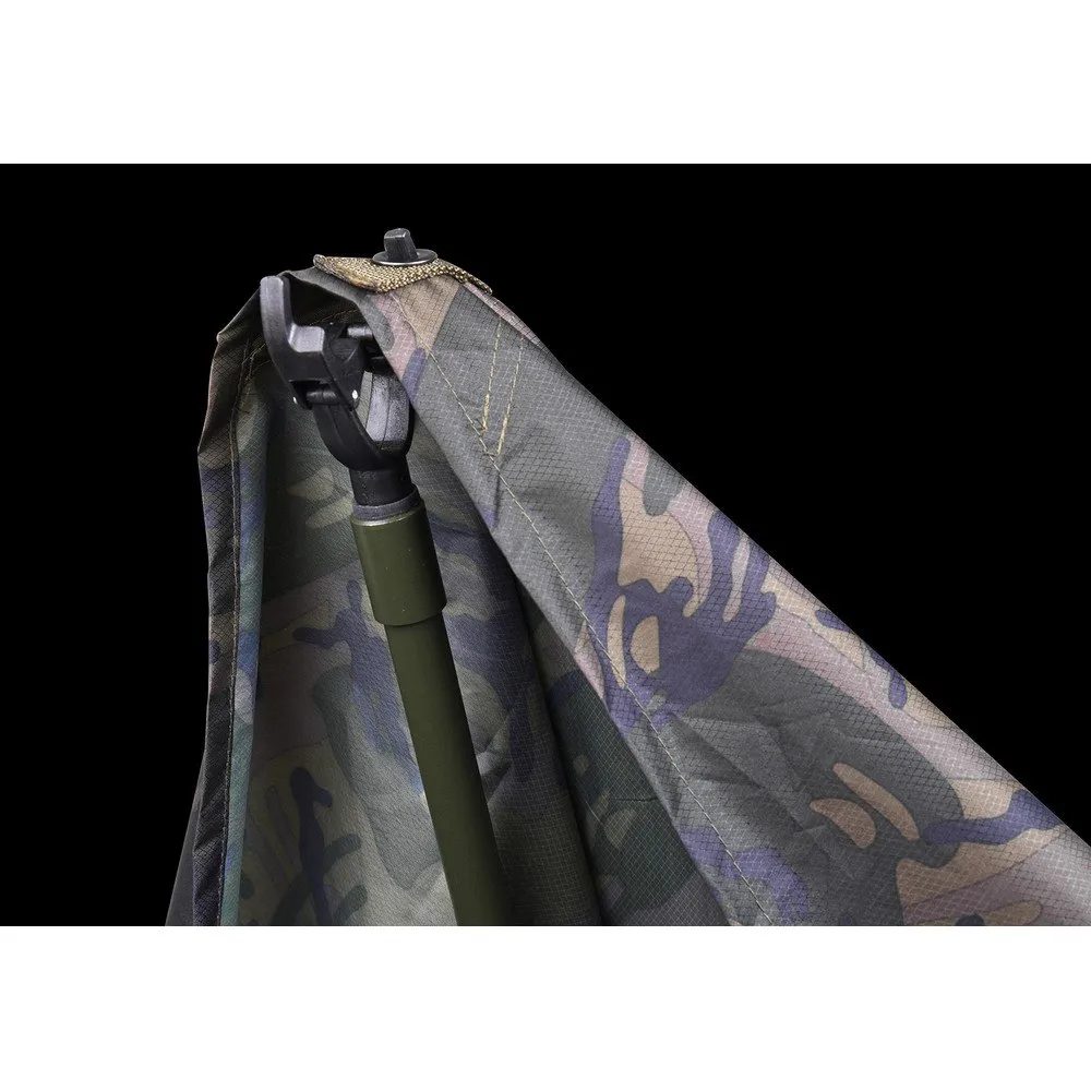 Este Bush Tracker é uma combinação de uma capa de cadeira de cama e um abrigo e é ideal para quem quer viajar leve. Esta capa é resistente ao vento e à prova d'água e é uma camada extra confortável para colocar sobre o seu saco de dormir. O Bush Tracker também possui uma função de lona dobrável, caso você queira usá-lo como abrigo durante a noite. Devido às cores e padrão de camuflagem, é o equipamento ideal para ficar totalmente escondido.