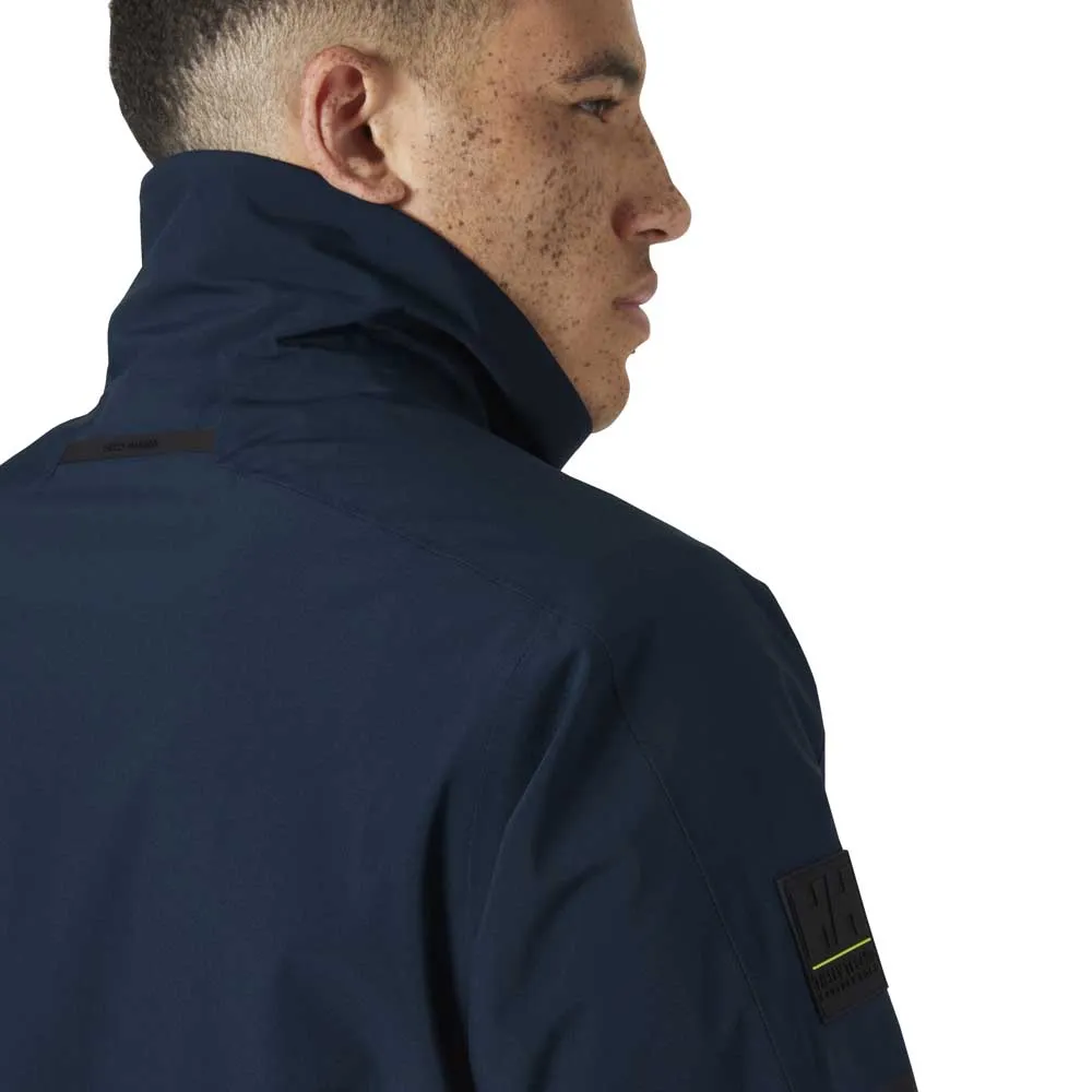 PROTEÇÃO HELLY TECH®|YKK VISLON®|Punhos e bainha inferior ajustáveis|Alça de suspensão externa|Bolsos no peito e para as mãos com zíper YKK®|Mangas articuladas para ótima mobilidade|Tecido com elasticidade bidirecional|Construção de 2 camadas|Anel D para cordão de segurança|Bolso interno no peito com zíper|Logotipo Helly Hansen (HH) em relevo|Material principal bluesign®|DWR sem PFC.