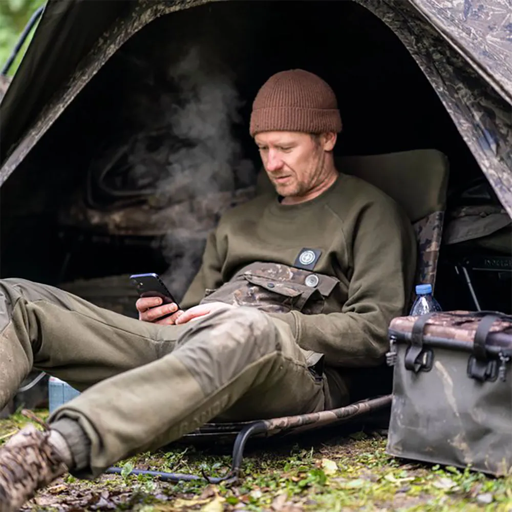 INDULGENCE BEDCHAIR SEAT CAMO. Uma cadeira de sessão leve e dobrável que permite eliminar o peso e o volume de uma cadeira de tamanho normal - sentando-se em cima de um sistema de dormir ou cadeira de cama para apoiá-lo confortavelmente e manter os olhos na água em frente ao seu pesqueiro. O Bedchair Seat Camo adapta-se a camas padrão e largas graças a um sistema de travamento por came e suporte de perna traseira extensível. Assento de sessão confortável e apoio para as costas sem uma cadeira adicional. Ajuste universal para a maioria das camas e sistemas de dormir. Acabamento com impressão camuflada Nash ampliada. Funciona como uma cadeira de hóspedes leve ou assento de perseguição.
