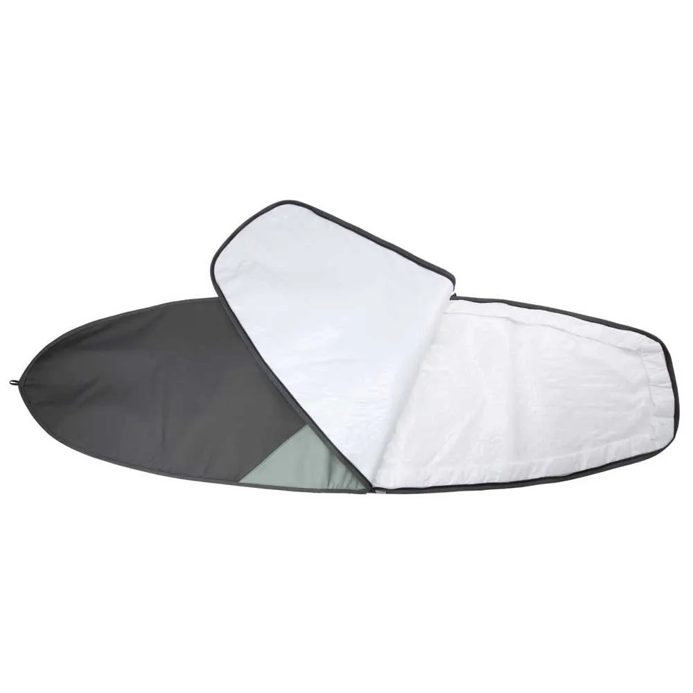 A missão principal desta capa é a proteção robusta. Ela apresenta um acolchoamento substancial de espuma de 5mm em toda a sua construção, criando uma barreira almofadada que absorve eficazmente os impactos e previne amolgadelas, mossas e arranhões. Esta camada essencial de defesa proporciona-lhe tranquilidade ao carregar a sua prancha num tejadilho, ao navegar em espaços apertados ou ao guardá-la entre sessões.