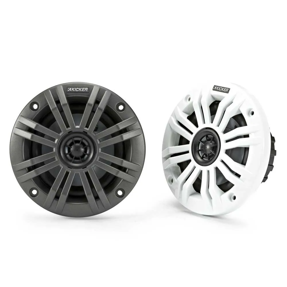 Alto e claro, os alto-falantes coaxiais marítimos KM são construídos para bombear as músicas e a diversão para os próximos anos! Quer você monte seus alto-falantes no casco ou em gabinetes de torre KICKER®, você também terá um par de grades resistentes de grau marinho! Nossos alto-falantes são feitos para prosperar na água.