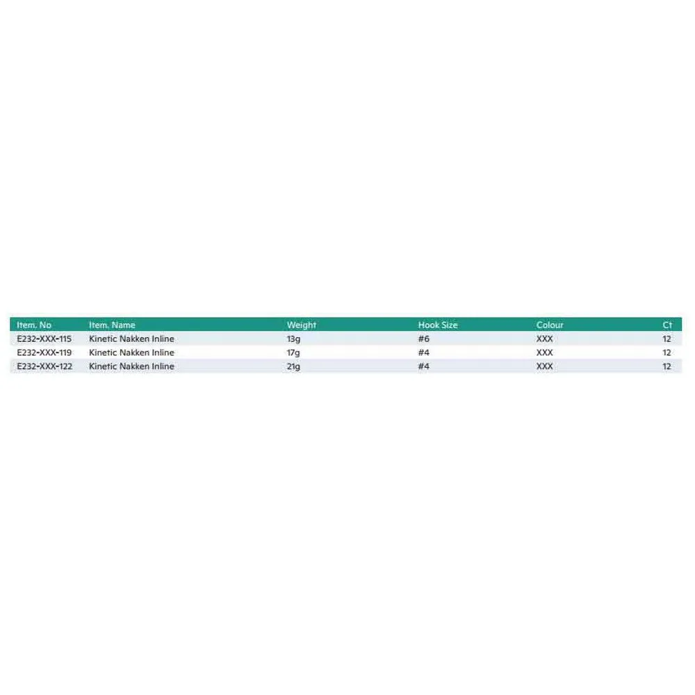 Baseado na popular isca cinética Nakken, esta isca em linha tem tudo. Vai lançar longe mesmo contra o vento mais forte, pode ser pescado rápido ou lento, pode ser usado em águas rasas e profundas. Kinetic Nakken Inline imita a ação de um baitfish em fuga. Uma recuperação média/rápida chamará a atenção da truta faminta e com uma parada de rotação para criar uma rotação irregular, você pode garantir um golpe forte.