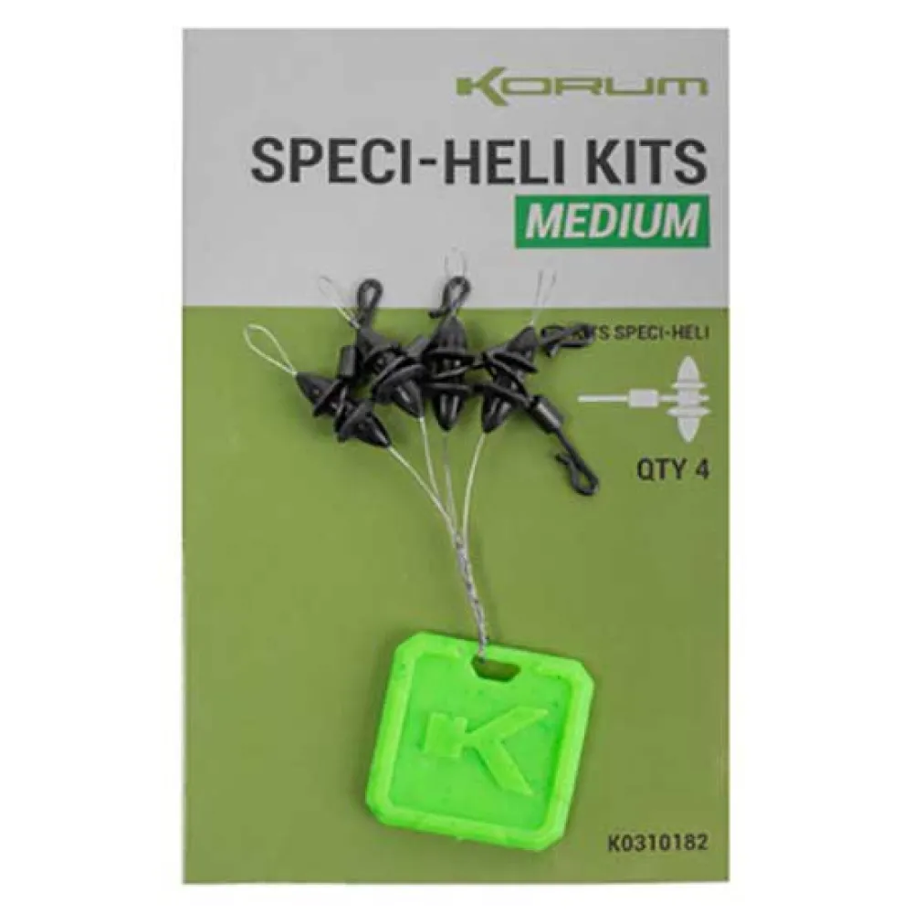 O Kit Speci Heli fornece um equipamento seguro e ajustável para montagens de helicóptero, paternosters e link ledgering. Completo com um Big Eye Swivel de acabamento fosco com fixação de troca rápida, para uso com sua manga anti-emaranhamento preferida. O próprio Heli Bead é feito de um material super aderente, como um stop de flutuação, e pode ser pescado em qualquer lugar da linha sem deslizar. Fornecido em fios, pronto para pescar.