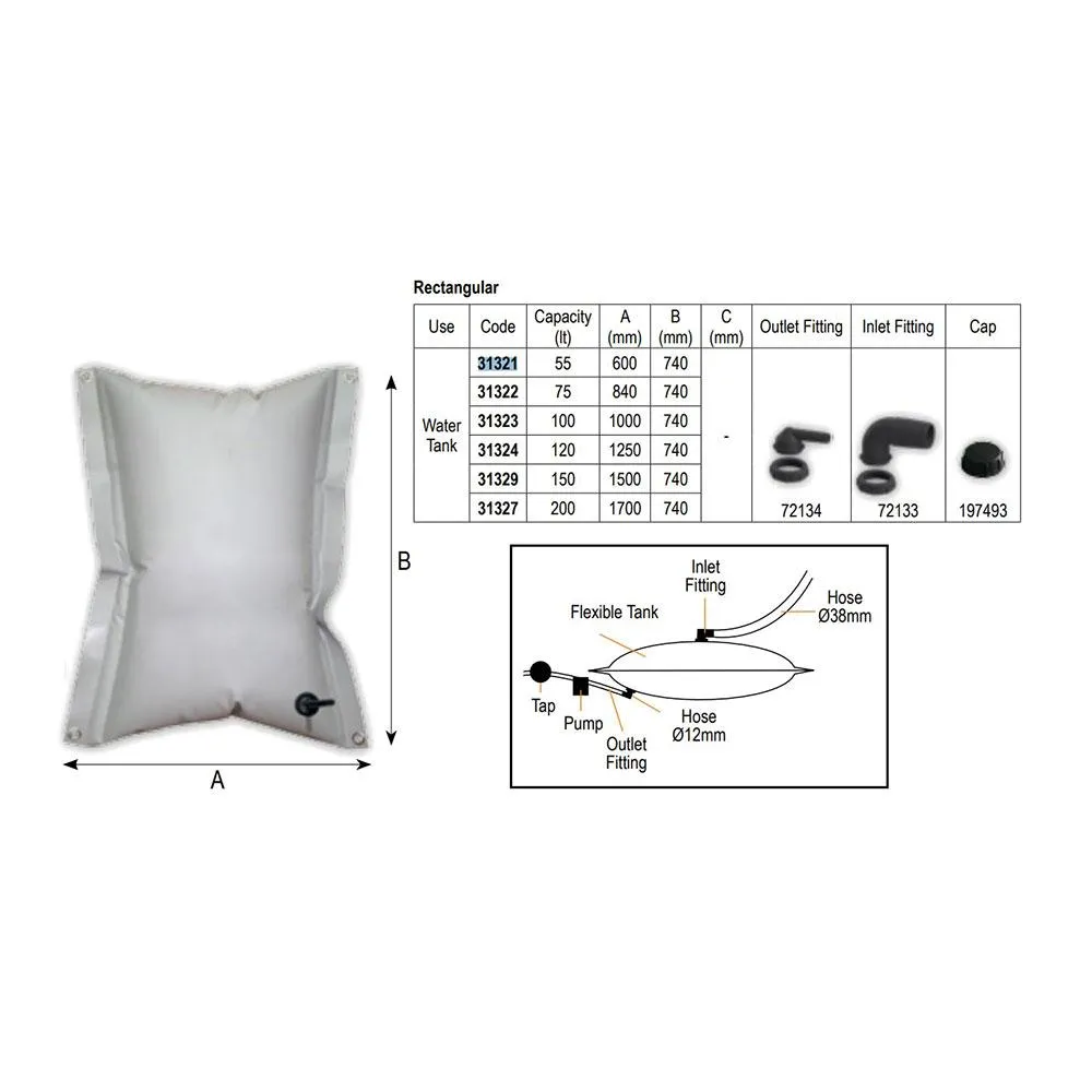 Tanque de água flexível retangular 55 / 75 / 100 / 120 / 150 / 200 litros.