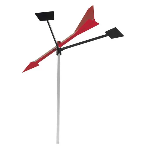 A palheta vem desmontada, por um lado o eixo, por outro a seta, e por outro as marcas de referência do ângulo de arrasto. Inclui as peças para fixar o eixo ao lado do mastro