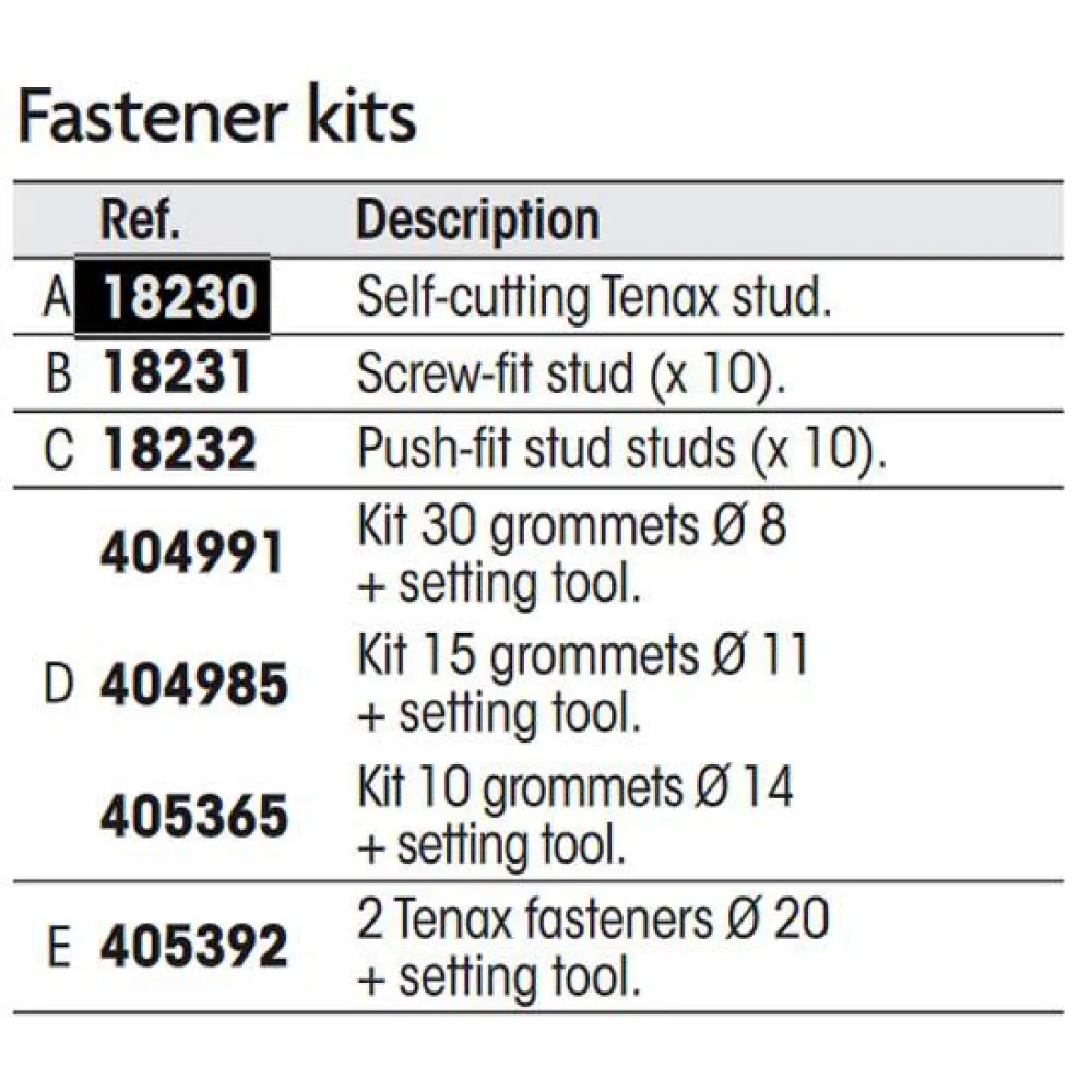 Ficha técnica Plastimo Kit de fecho com fixadores Tenex de corte automático