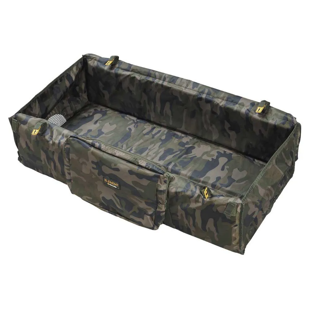 O berço é camuflado em uma estampa camuflada elegante, combinando perfeitamente com o ambiente natural. O Element Com-Pact Cradle é feito de materiais duráveis, garantindo que ele possa suportar os rigores do uso ao ar livre.