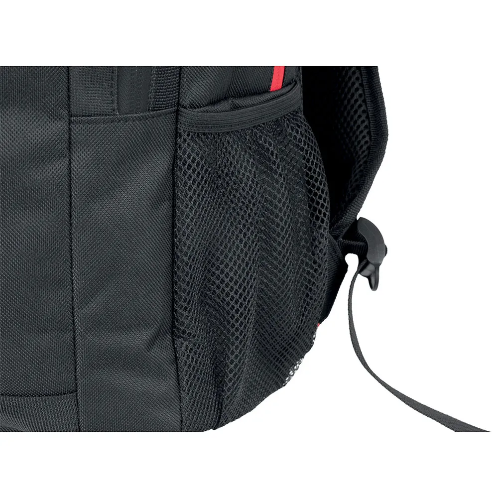 Possui um compartimento acolchoado para computador e dois bolsos laterais multiuso feitos de rede elástica.