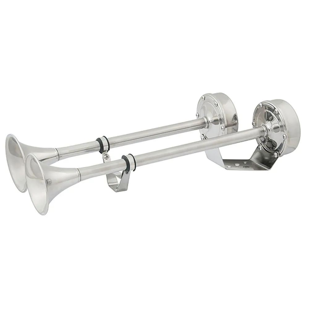 Invest in unparalleled safety and uncompromising quality with the SEACHOICE Dual Trumpet Electric Horn. This isn´t just a horn; it´s a declaration of your commitment to safety on the water. The brilliant, polished stainless steel finish provides a premium, professional look that complements any boat, from a family cruiser to a luxury yacht. Backed by an industry-leading 5-year warranty, you can trust in the long-term performance and reliability of your investment. Don´t settle for less when it comes to being heard. Equip your vessel with the commanding presence and enduring quality of a SEACHOICE horn and navigate with the ultimate confidence.