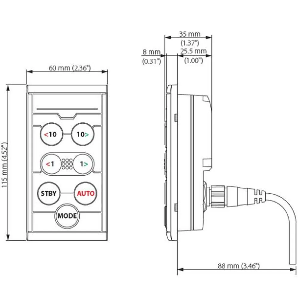 O controle remoto com fio OP12 se integra perfeitamente com os sistemas de piloto automático Simrad para fornecer controle de modo intuitivo, ajustes de curso e direção hidráulica. Projetado para complementar o design de perfil baixo de instrumentos e monitores de ponte de vidro Simrad, este controle remoto pode ser combinado com a tela de instrumentos de cores IS42 para criar um controlador autônomo de piloto automático ou usado como um teclado de piloto automático dedicado para displays multifunções GO, NSS e NSO evo2.