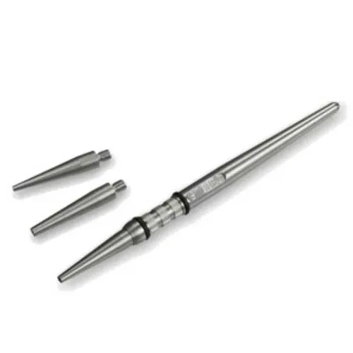 Finalizador cônico extra amigável. É produzido com material de aço inoxidável por máquinas de alta precisão. Fornecido com três cabeças diferentes de furos de Ø 1,4 2,0 2,7 mm. Instruções incluídas. 1 peça por saco, tamanho de embalagem de 10 sacos.