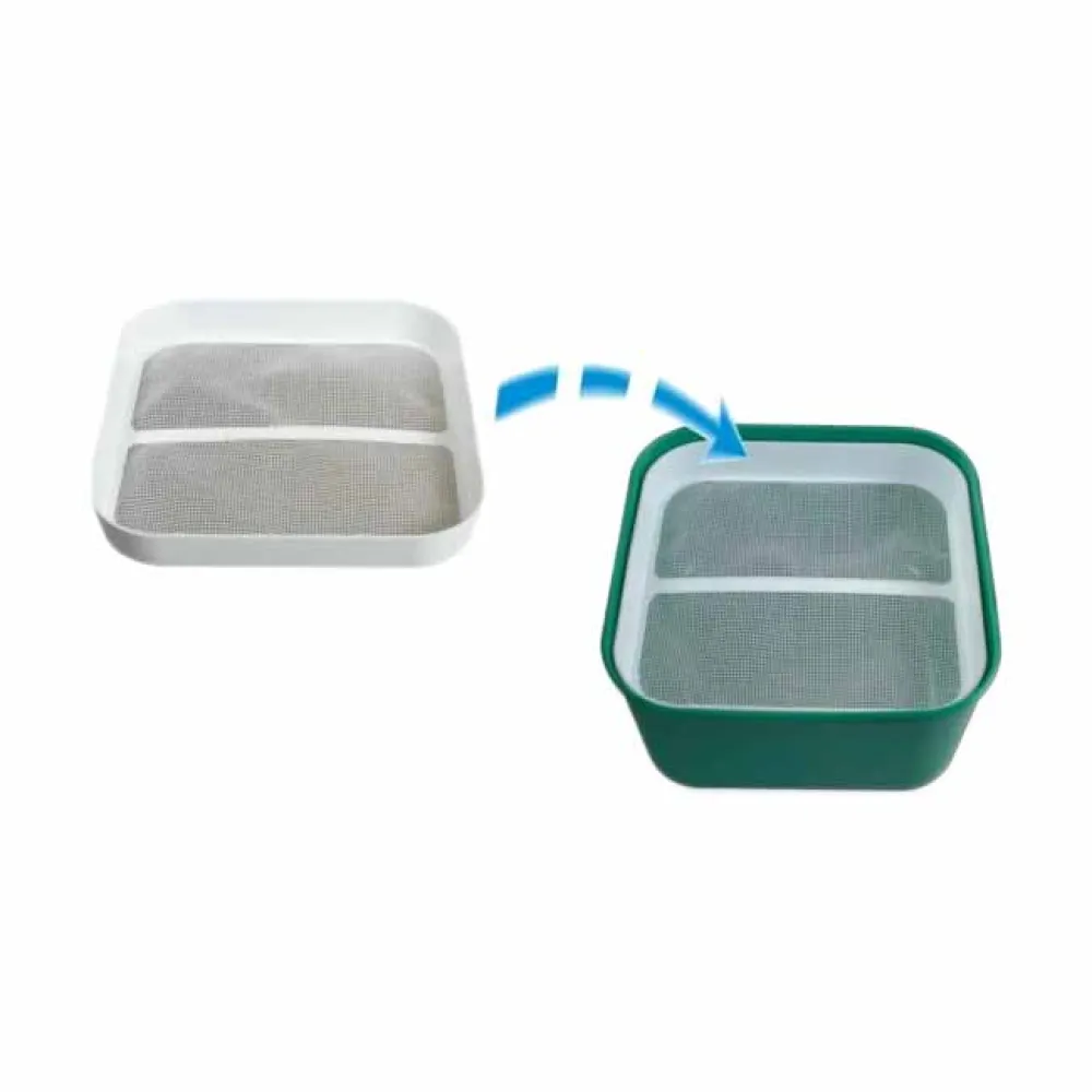 A Peneira STONFO é projetada para desempenho e durabilidade. Seu design inteligente apresenta uma estrutura robusta e rígida que resiste aos rigores do uso regular, garantindo longevidade e desempenho confiável temporada após temporada. Uma característica fundamental é o sistema de grelhas intercambiáveis, que permite selecionar o tamanho de malha perfeito para qualquer tarefa - desde a criação de uma mistura ultrafina para trabalhos delicados em canais até uma mistura mais grossa para rios de correnteza rápida ou pesqueiros comerciais. A peneira é projetada para se encaixar perfeitamente e com segurança em baldes e tigelas STONFO compatíveis, criando uma plataforma estável e sem oscilações que evita derramamentos e torna o processo de peneiração limpo e sem esforço. ---