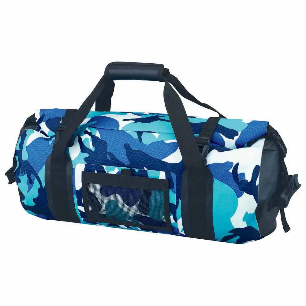 Mala impermeável confeccionada em tecido ultraforte flexível, com costuras termossoldadas e aba impermeável para ser enrolada e presa em 4 pontos para total estanqueidade.