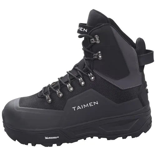 Nós estamos orgulhosos de apresentar os Taimen Uchur Wading Boots, criados em colaboração com o lendário fabricante de pneus, Michelin®. Estas botas revolucionárias, através de uma combinação das mais recentes tecnologias em design e produção de solas, bem como inovações na fabricação de botas de pesca, introduzem um novo padrão de aderência, durabilidade em superfícies molhadas e segurança. Sola Michelin: Especialmente projetada para a pesca com mosca, esta sola oferece mais de 40% de tração em terrenos molhados do que produtos concorrentes e 25% a mais de resistência à abrasão. Desenho da banda de rodagem inspirado na geometria avançada dos pneus Michelin: O perfil largo da bota garante estabilidade, maior contato com o solo e um padrão de banda de rodagem que minimiza o impacto e otimiza a distribuição de peso. Entressola de duplo elemento: A entressola inclui uma placa interna co-moldada que melhora a estabilidade torcional da bota e a retenção dos pinos. Entressola macia: Melhora a sensação do leito do rio e é mais durável do que as entressolas de EVA padrão. 28 soquetes para pinos. Cada par de botas de pesca Taimen Uchur possui 14 soquetes integrados para pinos em cada sola, projetados para a inserção segura de pinos de pesca. Esses soquetes são posicionados de forma ideal para garantir máxima aderência e estabilidade, aumentando significativamente a segurança e agilidade do usuário em diversos ambientes de pesca. Parte superior feita de poliuretano moldado - composto FlexartURT™: Design único sem costuras com reforço nas áreas mais propensas à abrasão. O poliuretano, sendo até 30 vezes mais resistente à abrasão do que a borracha, garante durabilidade e proteção duradouras. Além disso, a ausência de capas protetoras de borracha coladas ou costuradas na ponta do pé aumenta ainda mais a qualidade e durabilidade do produto. Protetor de ponta do pé completo dentro da bota: Feito de material composto, ele oferece proteção e evita lesões ou compressão dos dedos devido à pressão da água ou impactos com pedras durante a pesca. Estabilidade excepcional: A construção das botas, o calcanhar reforçado, o poliuretano moldado e a ponta rígida garantem estabilidade e segurança excepcionais ao atravessar vários terrenos e condições, o que é crucial para os entusiastas da pesca com mosca. Corte mais alto e forro macio: Para melhor suporte ao tornozelo e conforto ao usar. Junte-se à revolução da pesca com mosca! Experimente as novas botas de pesca.Botas Taimen Uchur e experimente estabilidade, conforto e aderência incomparáveis oferecidos pela exclusiva tecnologia Michelin®.