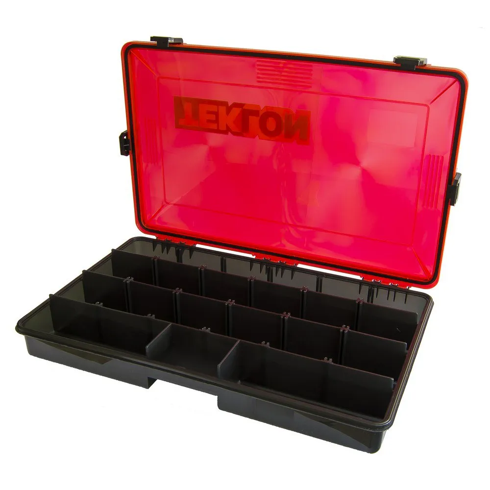 O sistema à prova d'água com junta de borracha e quatro fechos dos modelos LS3100 garantirão que suas iscas permaneçam secas o tempo todo, mesmo em condições de chuva, respingos a bordo ou quedas na água da caixa ou do pescador. Por sua vez, este sistema faz com que a caixa flutue, podendo recuperá-la caso caia acidentalmente na água. Os três tamanhos disponíveis, juntamente com os vários divisores móveis incluídos em cada caixa, permitirão que você adapte a configuração de suas caixas Teklon® sob medida para suas iscas, independentemente do tamanho.