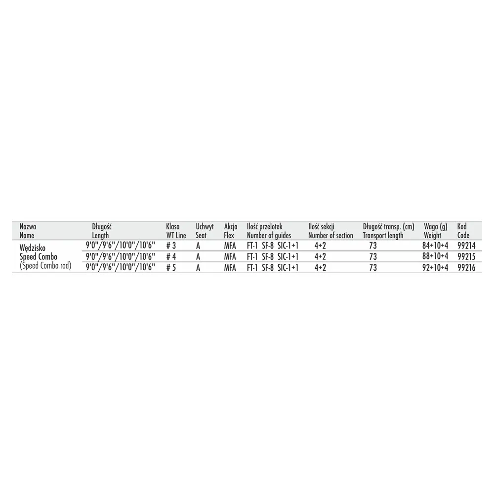 Esta cana foi projetada para pessoas que gostam de minimalismo. Uma cana muito versátil em vez de várias. Graças à cana speed combo, podemos pescar em rios pequenos, rasos e médios, bem como em rios grandes e profundos. A cana está equipada com passadores Pacific Bay e é fabricada em carbono 36T. O porta-carretel muito robusto é feito de alumínio e possui duas porcas de aperto. O porta-carretel é acabado com linda madeira exótica. O cabo de cortiça português AA é durável por muito tempo. Vem completo com duas extensões, bem como tubo com câmaras divididas.