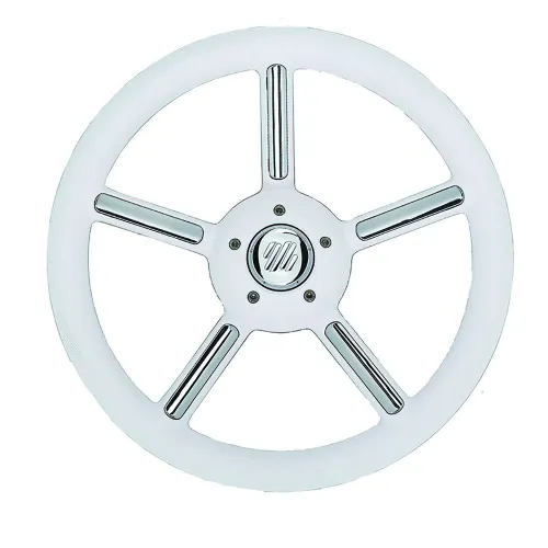 Construído para o ambiente marinho hostil, o V56 possui um design robusto de 5 raios fortificado com elegantes inserções de aço inoxidável. Este recurso não apenas adiciona um toque de sofisticação moderna ao seu cockpit, mas também oferece excelente integridade estrutural e resistência à corrosão do sal e do sol. Este volante não é apenas uma atualização; é um investimento de longo prazo na funcionalidade e aparência do seu barco.