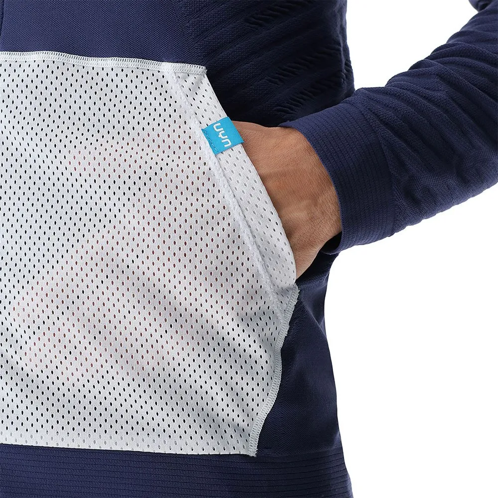 Os bolsos e o forro do capuz com tecido em mesh contrastante dão um toque esportivo.