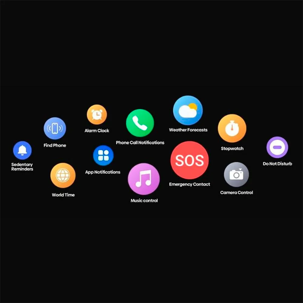 O relógio se conecta com o aplicativo Fitbeing para análise de dados de saúde e exercícios; além disso, é compatível com Strava e Apple Health através deste aplicativo.