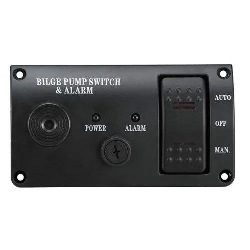 Panel av svart ABS för länspump att använda med automatisk strömbrytare.