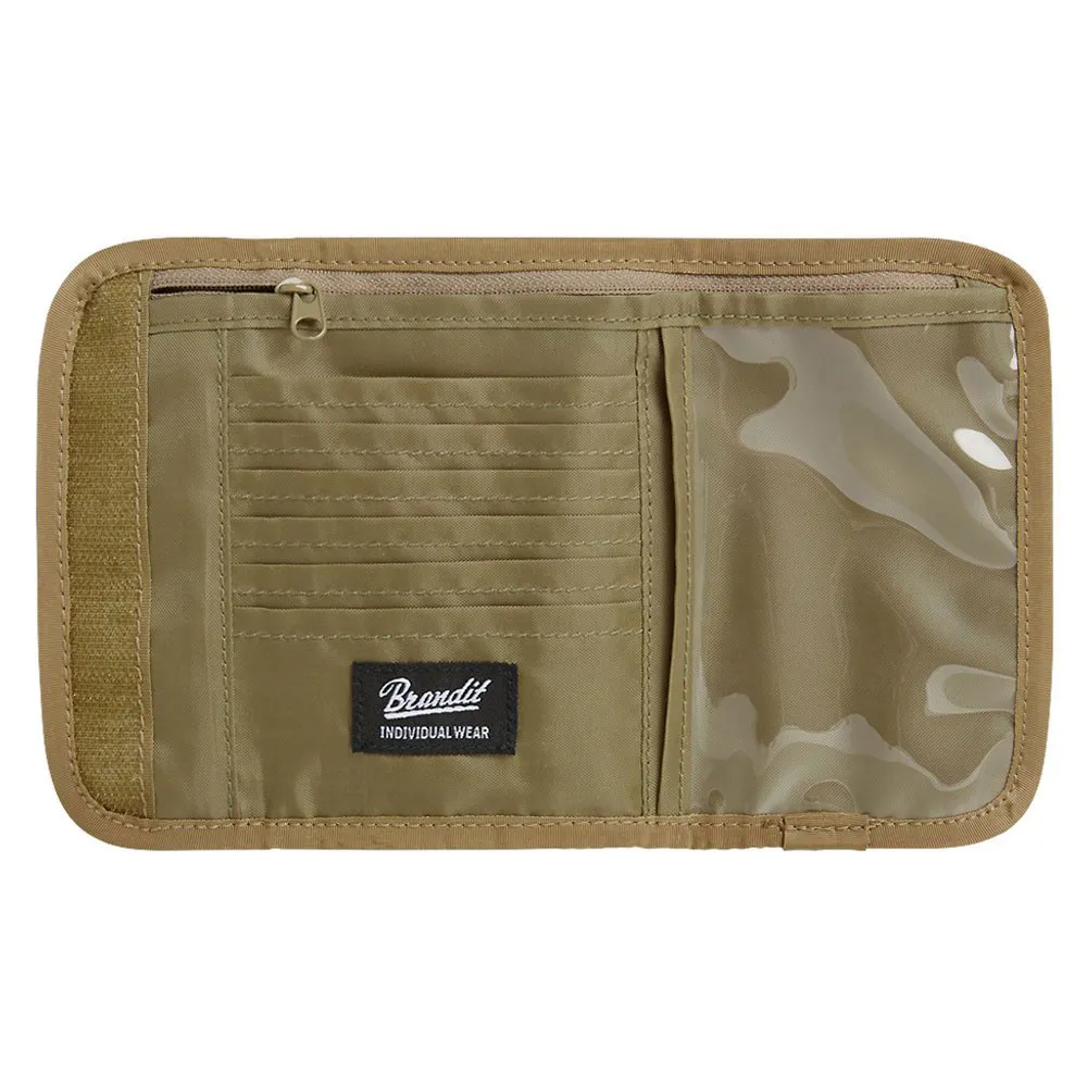 Robust 600DEN polyestermaterial, externt myntfack med blixtlås, 6 kortplatser, insida genomskinlig ficka för identitetskort, utsida transparent ficka för identifikationskort, 1 öppen sedelfack, 1 sedelfack med blixtlås.