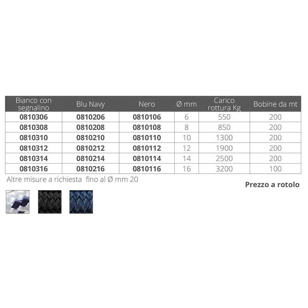 Dubbelsjunkande fläta med utvändig höghållfast polyesterstrumpa, inre kärna i flätad medium tenacity polyester. Mycket mjuk topp som tack vare den yttre strumpan är okänslig för atmosfäriska ämnen. Idealisk för förtöjning av små, medelstora och stora båtar, men även för användning ombord i allmänhet, fendrar och bindningar. Vit Färg Med Fleck.