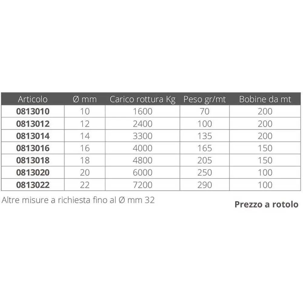 Sjunkande polyesterfläta med hög hållfasthet - Rund linje med 12 dubbla tvinnade trådar (hawser) utan invändig kärna. Specialbearbetning med motsatta och balanserade vridningar, både på trådarna som utgör flätan och på de enskilda trossarna som utgör tråden, för att säkerställa bästa motståndskraft mot slitage och maximal seghet. Den förblir alltid mjuk och lätt att hantera även efter intensiv och kontinuerlig användning. Ej svängbar och lätt att täta även utan användning av specialverktyg. Idealisk för ankring och förtöjning.
