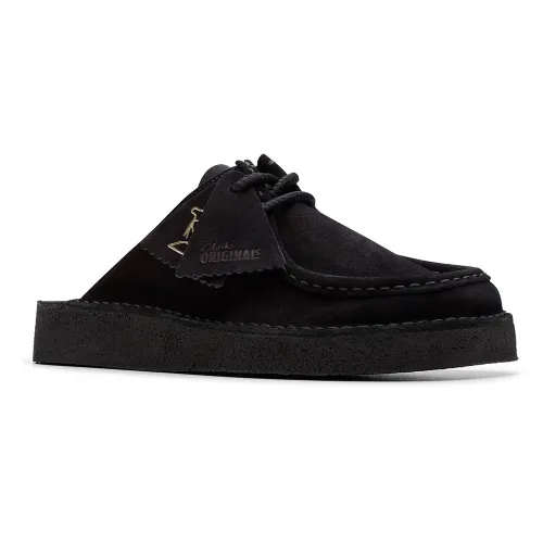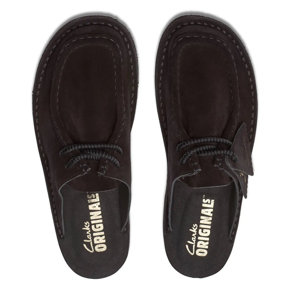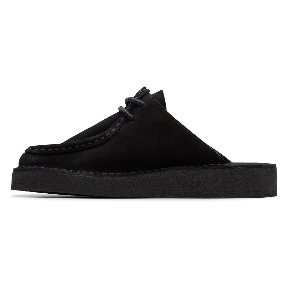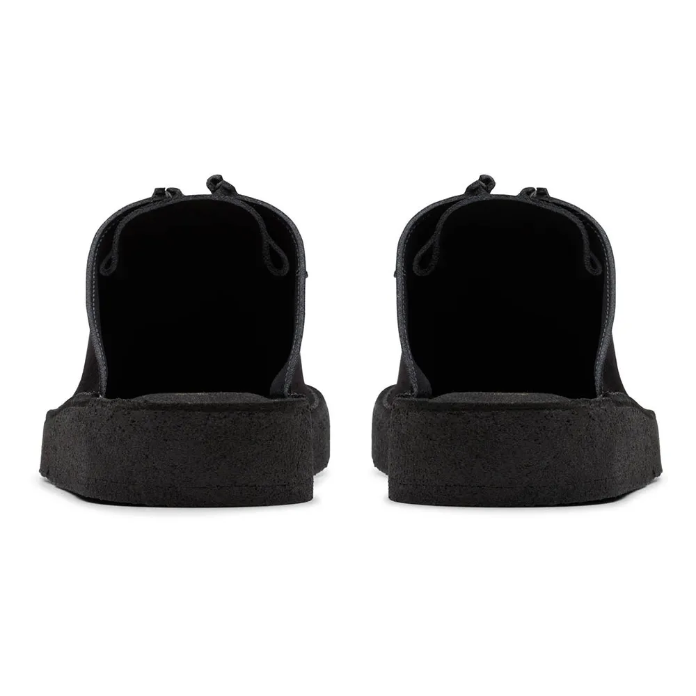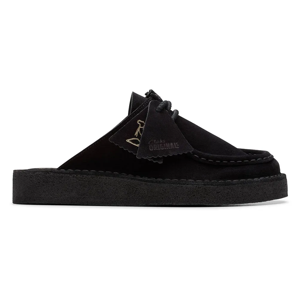 Utrustad med den ikoniska stick down-konstruktionen och Wallabee-inspirerad vamp-profil, anländer muleskon för den nya säsongen i mångsidig svart mocka.