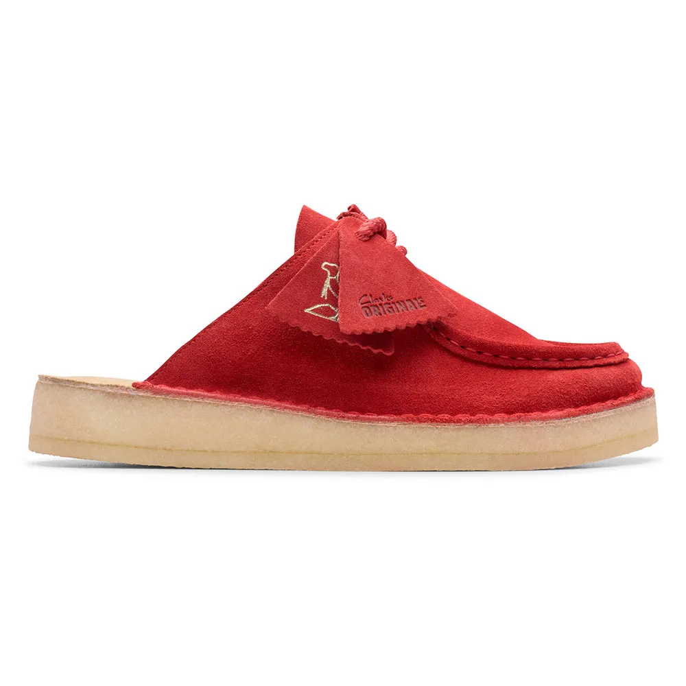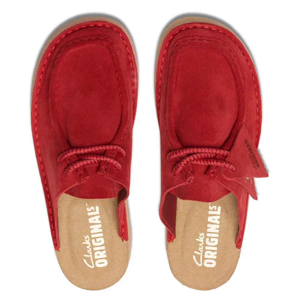 Utrustad med den ikoniska sömkonstruktionen och Wallabee-inspirerad vamp, anländer muleskon för den nya säsongen i mångsidig röd mocka.