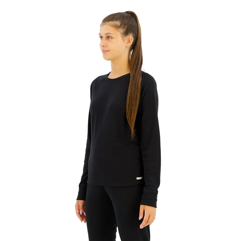 Rundhalsad tröja i polyester med långa ärmar, designad för att användas som underställ under kallare dagar eller för vintersportäventyr.